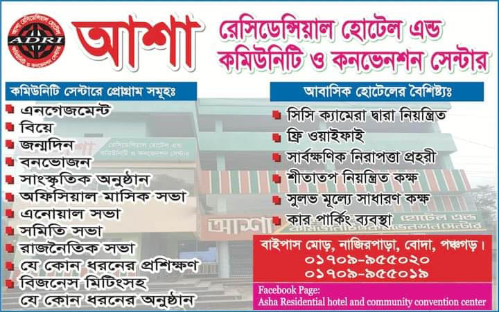 পঞ্চগড়ের বোদায় ১ম মানসম্মত, নিরিবিলি আবাসিক হোটেল ও কমিউনিটি সেন্টার। পঞ্চগড় এ ব্যাক্তিগত গাড়ি নিয়ে এসে বা, ভাড়া করে পুরো পঞ্চগড় ঘুরে দেখার ইচ্ছা হলে বোদায় থাকাটা হবে সবচাইতে বেষ্ট---